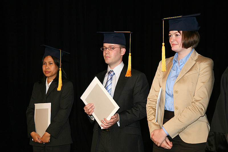 NÜRTINGEN (ur) In feierlichem Rahmen hat die Hochschule für Wirtschaft und Umwelt Nürtingen-Geislingen (HfWU) 139 Absolventen der Studiengänge Betriebswirtschaft, Internationales Finanzmanagement und International Finance, sowie Agrarwirtschaft und Internationales Management verabschiedet. Die besten Absolventen wurden mit Preisen bedacht, eine außergewöhnliche Ehrung wartete auf die Abgänger des Studiengangs Master of International Finance.