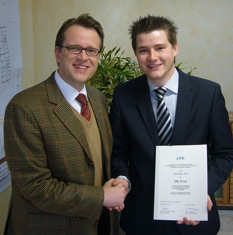 - Preis des Instituts für Kooperationswesen (IfK) geht 2013 an Absolventen des Studiengangs Immobilienwirtschaft -