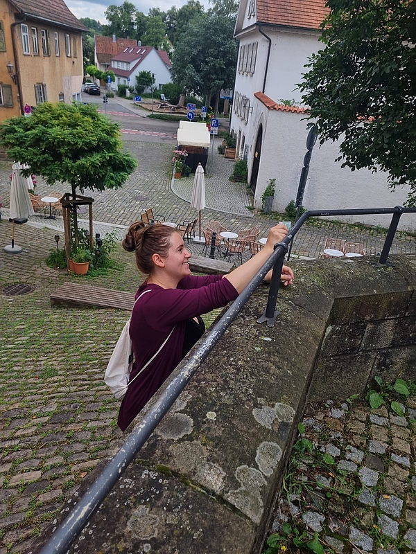 Die ersten „Fundworte“ schmücken bereits die Geländer der Zeppelinstaffel. Hierfür haben die Studierenden Verena Bouslair, Celina El Midani, Hanna Frank, Amelie Klaus, Selina Kühndelt, Tabea Kürschner, Daria Novender, Corinna Schäfer, Leah Stalford und Luca Zinnhardt im ersten Durchgang Passanten nach einem für sie ganz besonderen Wort befragt. So sind bereits rund 150 Wörter zusammengekommen. Kulturamtsleiterin Susanne Ackermann beschrieb die „Fundworte“ bei der Eröffnung am 9. Juli als ein so feinsinniges und leises Projekt, dass in Zeiten von lauten Parolen einfach guttut.