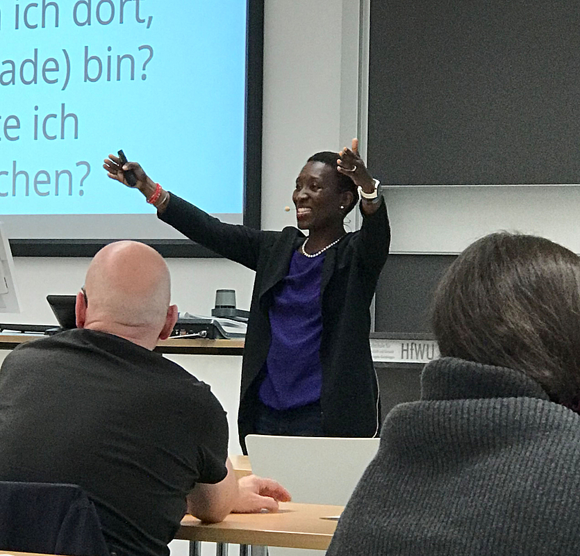 NÜRTINGEN (hfwu). Im Rahmen des Studium generale an der Hochschule für Wirtschaft und Umwelt Nürtingen-Geislingen (HfWU) berichtete die Psychotherapeutin Flavie Singirankabo von ihren Erfahrungen mit Rassismus und kollektiven Prägungen.