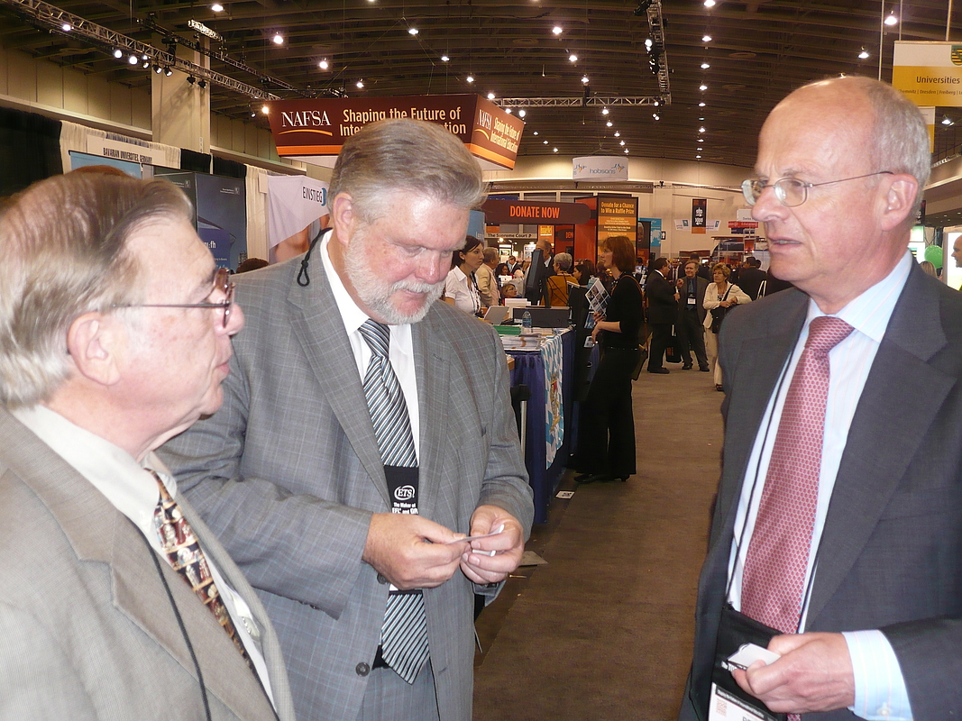 Der weltweite Wettbewerb um qualifizierte Studierende ist in vollem Gange. Ingenieurmangel und sinkende Akademikerzahlen bereiten auch hierzulande und vor allem dem Exportland Baden-Württemberg immer mehr Kopfzerbrechen. In dem Rennen um kluge Köpfe mischen derzeit vor allem die USA, England und Australien auf den vorderen Plätzen mit. Aber auch kommende wirtschaftliche Supermächte wie Indien und China beginnen Fachkräfte im Ausland anzuwerben oder gleich an die eigenen Hochschulen zu locken. Dem schauen Deutschland und vor allem auch das Bundesland Baden-Württemberg nicht tatenlos zu. Um in diesem Wettbewerb zu bestehen, müssen die Vorteile des Wissenschafts- und Forschungsstandortes Deutschland offensiv vermittelt werden. Auf der anderen Seite ist es für deutsche Studierende ebenso wichtig, international qualifiziert zu sein und Auslandserfahrung zu sammeln. Beide Aspekte sind auch das Anliegen der Hochschule für Wirtschaft und Umwelt. Dafür gibt es politische Unterstützung: Der baden-württembergische Wissenschaftsminister Professor Dr. Peter Frankenberg besuchte mit dem neuen Ministerialdirektor Klaus Tappeser die NFSA-Konferenz in Washington und begrüßte auf einem Empfang des Landes die Partner der baden-württembergischen Hochschulen.
