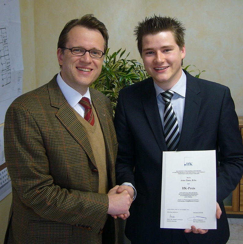 Das Institut für Kooperationswesen (IfK) hat Arno Zintz den diesjährigen IfK-Preis zugesprochen. Ausgezeichnet wird der Absolvent des Studiengangs Immobilienwirtschaft für seine Bachelor-Arbeit über Wohnungsgenossenschaften.