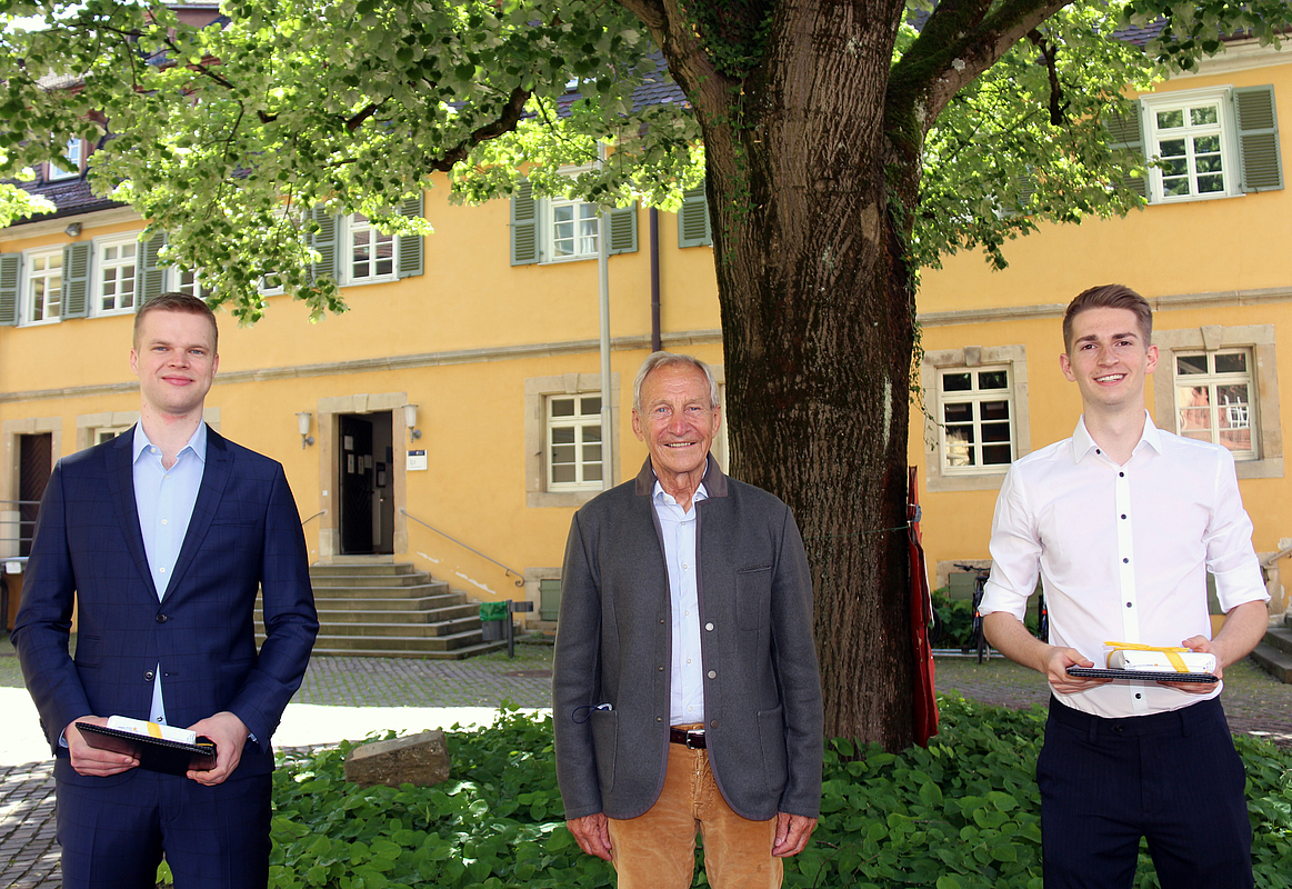 Mit dem Veranstaltungsformat „Talk“, das zeigte der Abend, lagen die Organisatoren aus dem Studiengang International Management und dem International Office der HfWU, richtig. Henzler verbindet, lehrreich und unterhaltsam zugleich, Management- mit Lebenserfahrung. Der Hochschule ist Herbert Henzler, der in der Nähe von Nürtingen aufgewachsen ist, eng verbunden. Ein nach ihm benanntes und von seiner Stiftung finanziertes Stipendium fördert mit jährlich 10.000 Euro den Auslandsaufenthalt von Studierenden. Der persönliche Kontakt zu den Stipendiaten ist dem Stipendiengeber ein Anliegen. Vor der Abendveranstaltung überreichte der Honorarprofessor in Beisein von HfWU-Rektor Prof. Dr. Andreas Frey die Urkunden an Jeremias Oster und Lars Wisotzki, die Stipendiaten der Jahre 2020 und 2021. Oster studiert an der HfWU Wirtschaftspsychologie und plant einen Studienaufenthalt in Moskau. Wisotzki ermöglicht das Stipendium einen Aufenthalt in Peking im Rahmen seines International Finance-Studiums. „Ein Auslandsaufenthalt heißt vor allem, etwas über sich selbst zu lernen,“ gibt ihr Mentor den beiden Studenten mit auf den Weg. Eine Gesprächsrunde mit den aktuellen und ehemaligen Henzler-Stipendiat*innen war ein weiterer Programmpunkt beim Besuch an der HfWU. „Ihr seid die Generation auf die die Zivilgesellschaft mehr denn je schaut, ihr seid es, die wirkliche Veränderungen voranbringt“, zollte Henzler den jungen Menschen Respekt.