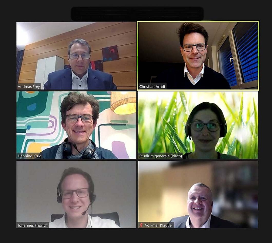 Unter dem Titel „Marktplatz fürs Engagement“ stellt das Studium generale der HfWU in diesem Semester lokale „Projekte und Ideen für eine gelingende Zukunft“ vor. „Das Marktplatz-Konzept zielt darauf, in den direkten Dialog mit den Akteuren für eine nachhaltige Entwicklung zu kommen. Die Hochschule will hier auch die Rolle eines Katalysators für die Thematik einnehmen“, erläuterte Prof. Dr. Christian Arndt zum Auftakt der Reihe. Beim ersten Abend stand Nürtingen und die Frage „Wie können wir den Klimawandel auf kommunaler Ebene bekämpfen?“ im Fokus. Antworten in der virtuellen Runde gaben der Nürtinger OB Dr. Johannes Fridrich, Stadtwerke-Geschäftsführer Volkmar Klaußer und HfWU-Professor Dr. Henning Krug.