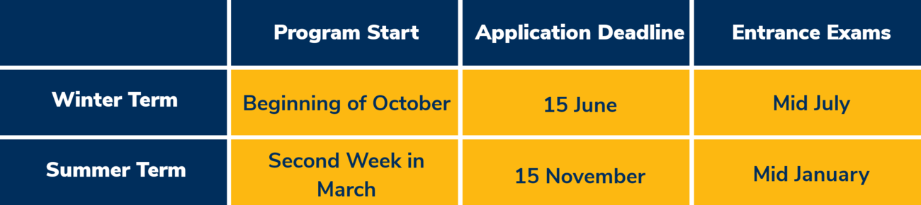 The selection process for the summer semester takes place in December and for the winter semester in July. It consists of a selection interview (remote and online options for international applicants). Selected applicants will be invited to an interview in person.