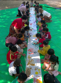 Der Schwerpunkt der künstlerisch-therapeutischen Angebote - innerhalb 4-wöchigen Projektlaufzeit – lag auf dem narrativen Einsatz von Farbe(n), dem „freien“ kreativen Schaffen und spielerischen Umgang mit den selbst geschaffenen Bildern und dabei gemachten Lernerfahrungen.