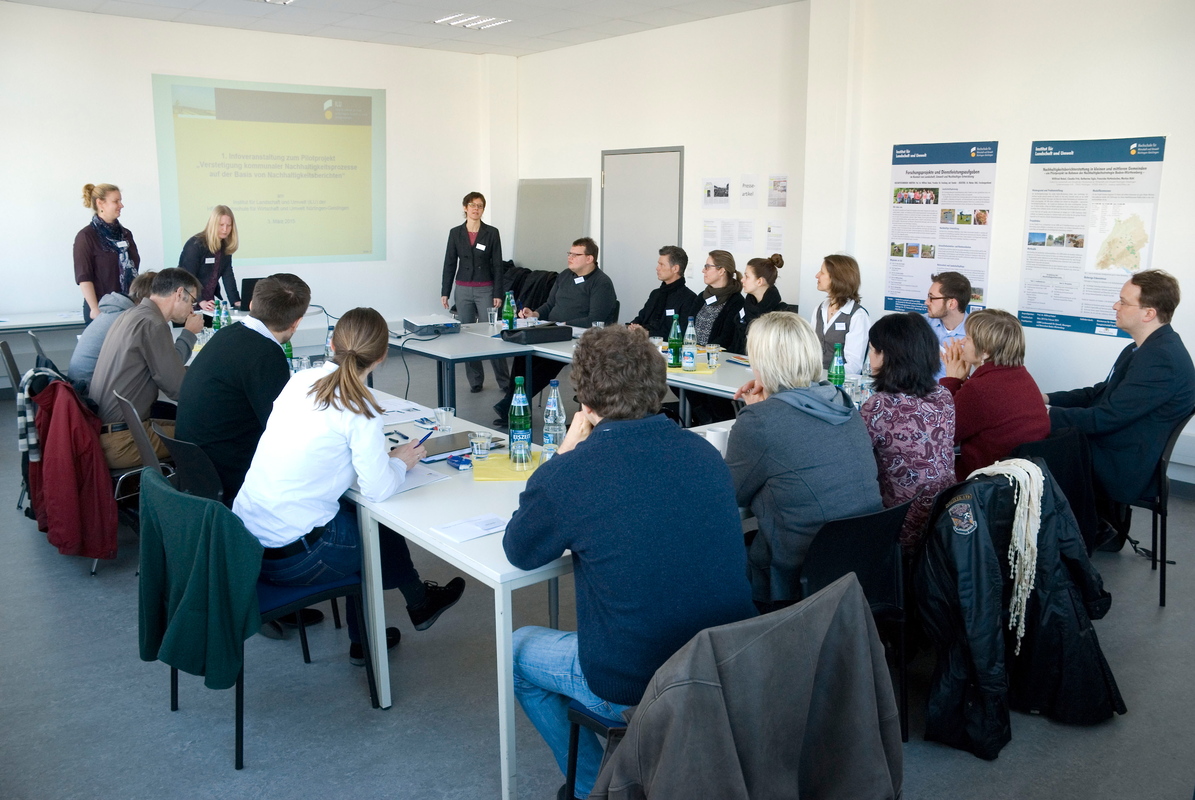 Bei den beiden Informationsveranstaltungen im neuen Forschungszentrum der HfWU sowie im Umweltzentrum Schwarzwald-Baar-Neckar in Villingen-Schwenningen informierten sich 30 interessierte Vertreterinnen und Vertreter aus Kommunalverwaltungen, politischen Gremien sowie ehrenamtlich engagierte Bürger über das seit dem Winter 2014/15 am ILU laufende Pilotprojekt „Verstetigung von kommunalen Nachhaltigkeitsprozessen auf der Basis von N!-Berichten“, für das aktuell Modellkommunen akquiriert werden. Die drei Präsentationen zu den Infoveranstaltungen „Vorstellung Pilotprojekt“, „Wie sehen kommunale N!-Berichte aus“ und „Organisation, zeitlicher Ablauf“ stehen im pdf-Format zum Download zur Verfügung.