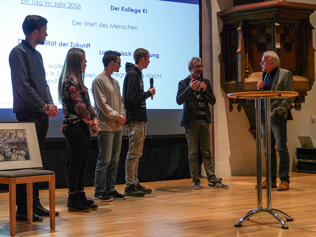 Mit 5000 Euro unterstützt der Bildungswettbewerb "Mitwirken, mitgestalten, Verantwortung übernehmen - Demokratiebildung in Schule, Weiterbildung und Wissenschaft" der Bildungsstiftung der Kreissparkasse Esslingen-Nürtingen das Projekt „More Future – Erzähl uns Deine Zukunft“, das am Zentrum für Nachhaltige Entwicklung (ZNE) an der HfWU entworfen wurde. Andreas Bulling und Prof. Dr. Rainer Nübel, die das Projekt 2018 in Verbindung mit der Internationalen Bauausstellung IBA’27 konzipiert und mit acht Schulen umgesetzt hatten, konnten die Jury der Bildungsstiftung überzeugen, dass ihr Konzept, Schüler aktiv in die Auseinandersetzung mit ihrer eigenen Zukunft zu bringen, für die Ausgestaltung einer Demokratie wichtig und hilfreich ist.