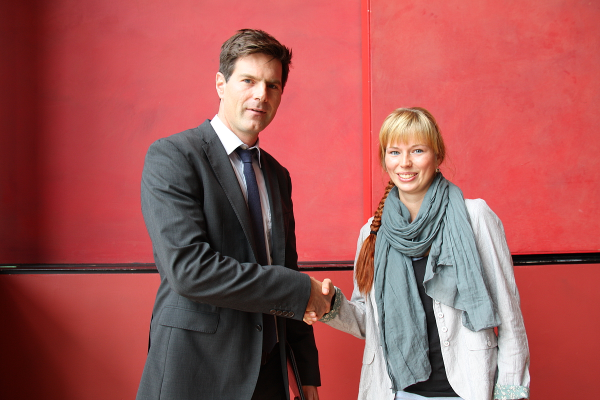 NÜRTINGEN. (hfwu) Die Hochschule für Wirtschaft und Umwelt (HfWU) hat den Nachhaltigkeitspreis verliehen. Ausgezeichnet wurde Franziska Bäker für ihre Arbeit zur Finanzierung von Landschaftspflege und Naturschutz im Biosphärengebiet Schwäbische Alb. Mit dem Preis werden herausragende Arbeiten zur nachhaltigen Entwicklung gefördert. Das Preisgeld von 1000 Euro kommt von der Winfried Böhler Umwelt Stiftung.