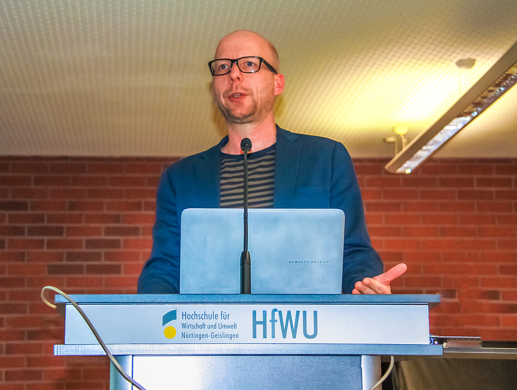 Zu dem öffentlichen Vortrag von Funk waren rund 80 Interessierte an die HfWU nach Nürtingen gekommen, Studierende und viele externe Interessierte. Prof. Rainer Sachse vom Bachelor-Studiengang Landschaftsarchitektur hatte den Experten eingeladen.