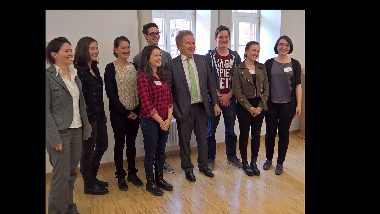 MÜNSINGEN/NÜRTINGEN. (hfwu) Auch in diesem Jahr laden die Hochschule für Wirtschaft und Umwelt Nürtingen-Geislingen (HfWU) und die BUNDjugend Baden-Württemberg junge Erwachsene zu einer Sommerakademie ins Biosphärengebiet Schwäbische Alb ein. Im Nachgang zur Sommerakademie im vergangenen Jahr trafen sich jetzt Teilnehmer mit dem baden-württembergischen Umweltminister Franz Untersteller und Regierungspräsident Klaus Tappeser.