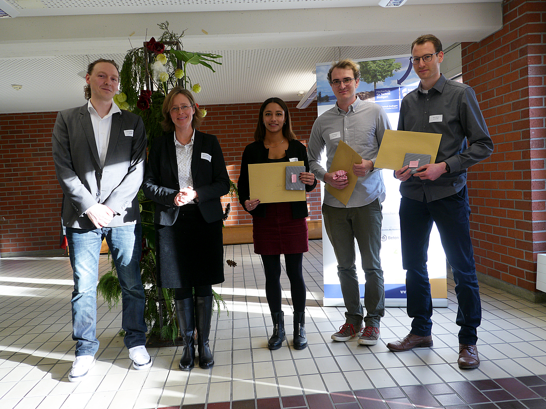 Traditionell werden im Rahmen des „Umweltages“ die „Umweltpreise“ des Informationszentrums Beton GmbH an Absolventen des Studiengangs verliehen. Sie gingen in diesem Jahr an Saba Wondafrash und Simon Wunsch. Paul Burkhardt erhielt einen Preis vom Hochschulbund der HfWU.