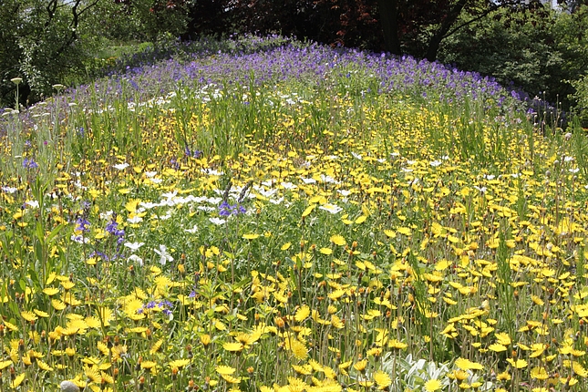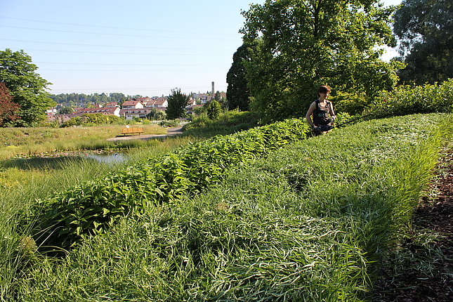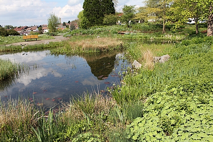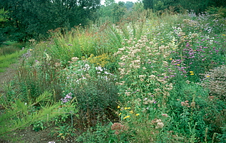 "Nymphenreigen" und "Nymphentanz" sind Mischpflanzungen, die speziell für vernässte Standorte entwickelt werden. Hier sind viele Arten der Lebensbereiche Freifläche feucht und Wasserrand zu finden. Ihr Standort wird durch die Nähe des Teichs befeuchtet.