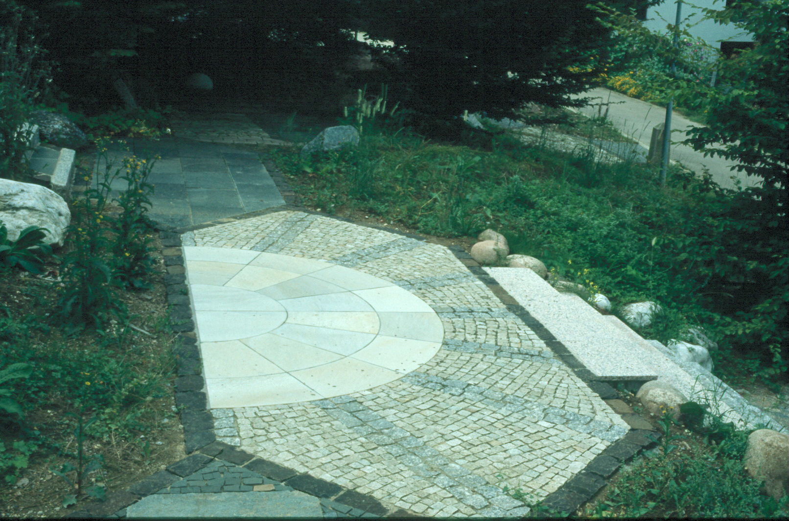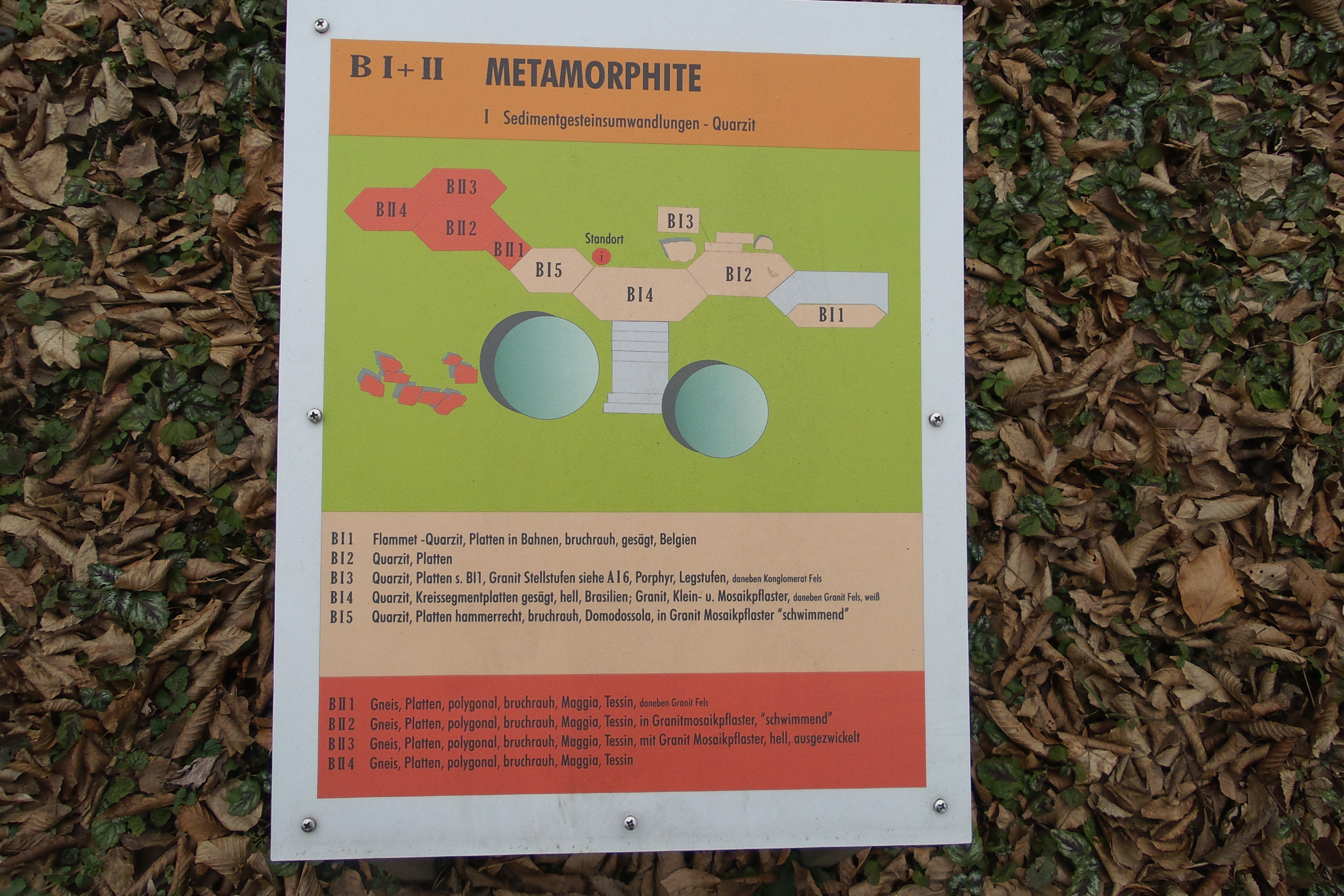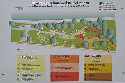 Der Naturwerkstein-Lehrpfad vermittelt Informationen über verschiedene im Garten- und Landschaftsbau verwendete Natursteinarten und deren Bearbeitungsmöglichkeiten. Die Anordnung der dargestellten Gesteine entspricht ihrer Entstehungsgeschichte.