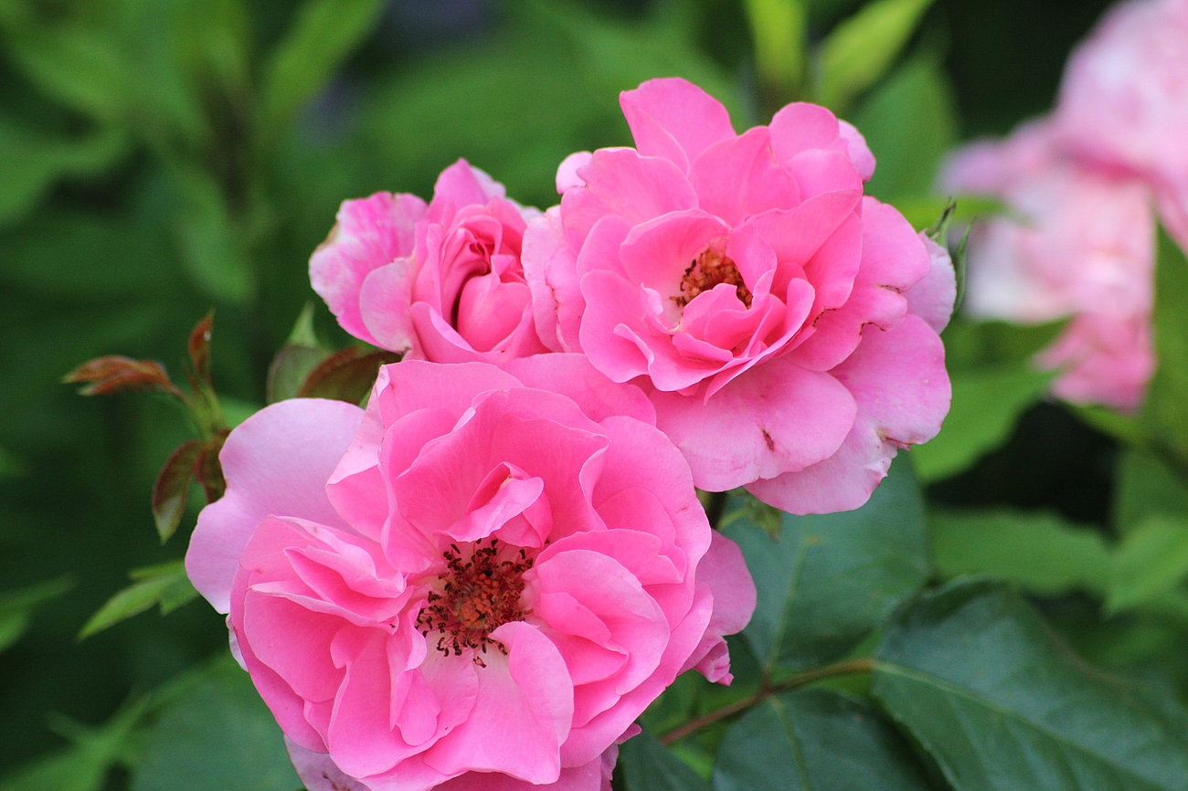 Der statische Bepflanzungstyp "Gruppenpflanzung" wurde erst kürzlich weiter differenziert. Die Gruppenpflanzungen werden nun je nach Charakter entweder als "Mosaikpflanzung", als "Leitstaudenpflanzung" (nach englischem Prinzip) oder als "Driftpflanzung" bezeichnet. Konkret übernehmen in unserem Bereich "Stauden und Rosen" Beetrosen die Funktion der Leitstauden. Die Gestaltung folgt einem hohen ästhetischen Anspruch, ist relativ kleinteilig und benötigt einen hohen Aufwand an Pflege. Dies erfordert nicht nur einen hohen zeitlichen Aufwand, sondern auch eine hohe Qualifikation der Pflegekräfte. Pflege bedeutet hier gleichzeitig Gestaltung, denn kurzlebige Stauden bereichern das Bild, vagabundieren durch die Pflanzung und werden dabei von den Pflegekräften durch belassen oder entfernen gesteuert.