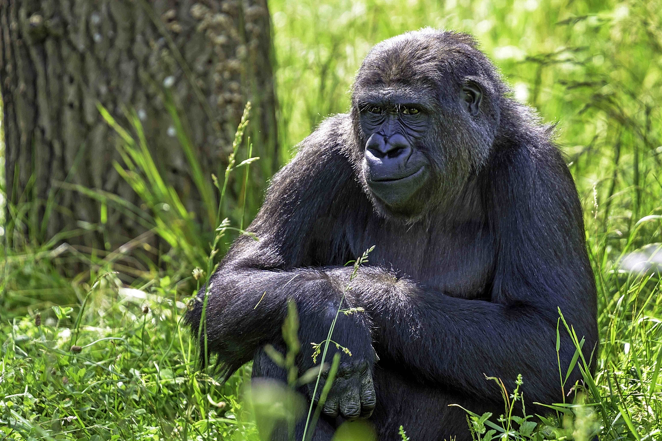 Die Geislinger Hochschultage besuchen das Affenhaus der Wilhelma. Wussten Sie, dass bei den Primaten die Frauenquote längst eingeführt ist? Wenn es um die Führung geht, geben bei den Menschenaffen häufig die Weibchen den Ton an. So zum Beispiel bei den Bonobos. Gorillas hingegen leben in Haremsgruppen und werden von einem erwachsenen Männchen geführt, dem Silberrücken.