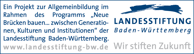 Meinungsbildung im Diskurs wurde durch die Landesstiftung Baden-Württemberg im Rahmen der Allgemeinbildung des Programms »Neue Brücken bauen... zwischen Generationen, Kulturen und Institutionen« finanziert.