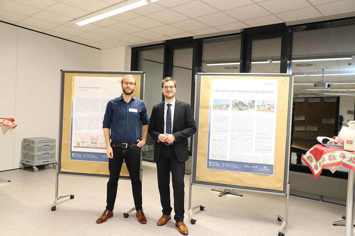 Während der Tagung stellten sich Studierende bereits zum zweiten Mal dem Wettbewerb um den „Kleinen Nachhaltigkeitspreis“ der HfWU. Mit einer Posterpräsentation stellten sie ihre Semesterarbeiten mit Bezug zur Nachhaltige Entwicklung vor, die Teilnehemer/innen der Tagung entschieden über die Gewinner. Wir gratulieren ganz herzlich Pascal Klein zum ersten Platz (300 €) und Benedikt Wildoer zum zweiten Platz (200 €)!