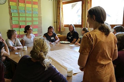 Neben wissenschaftlichen Beiträgen und Exkursionen gab es auch ganz praktische Arbeitseinheiten. Für diese waren die zwei BildungspartnerInnen eine Bereicherung, da sie selbst Wolle handwerklich verarbeiten und vermarkten oder in verschiedenen regionalen Initiativen und Projekten engagiert sind – und damit also richtige Experten aus und für die Praxis sind!