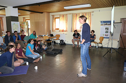 Auf dieser Sommerakademie begegneten sich junge Erwachsene im Alter von 18 bis 28 Jahren, die sich fürs Thema Nachhaltigkeit interessierten, und setzten sich mit konkreten Fragen aus einem Biosphärenreservat (in Baden-Württemberg: Biosphärengebiet) auseinander. Mit dabei waren Studierende verschiedenster Fachbereiche, Abiturienten, FÖJlerInnen und Azubis insbesondere »grüner« Berufsgruppen. Alle TeilnehmerInnen trafen sich für 6 Tage in einem einfach ausgestatteten Seminarhaus (St. Georgenhof auf der Schwäbische Alb bei Pfronstetten), wo sie nebenbei die ganze Zeit sehr lecker bekocht (bio, regional, fair!) und verpflegt wurden. Die abgeschiedene Lage des Georgenhofs hat sich besonders positiv auf die Gruppenatmosphäre ausgewirkt und den Fokus aufs Wesentliche geschärft.