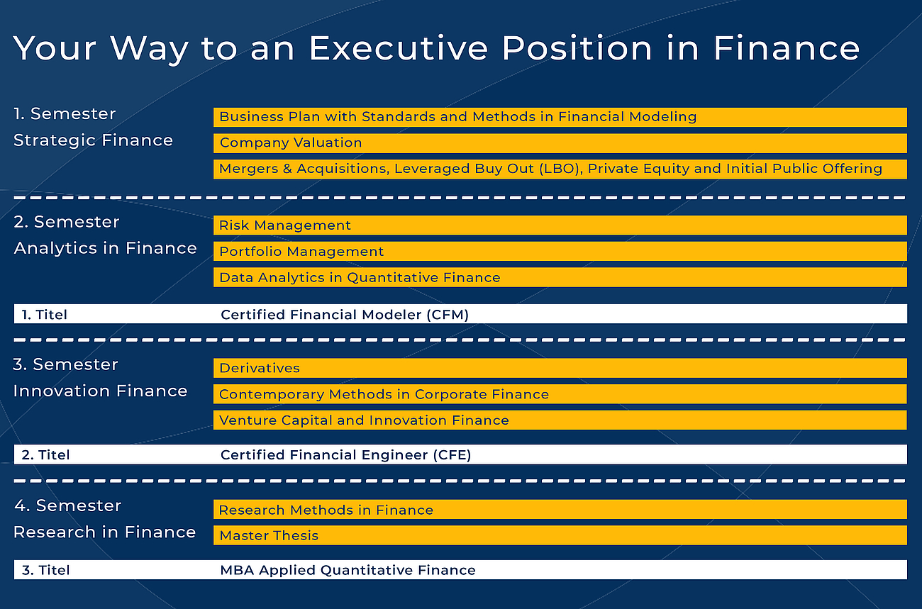 Das Studienprogramm MBA Applied Quantitative Finance hat alle Stufen dieses Systems der