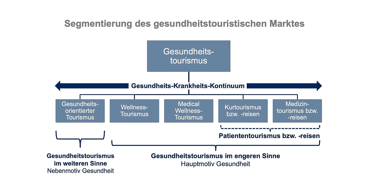 Damit Du Dich besser orientieren kannst, zeigen wir Dir im Folgenden, wie sich die fünf genannten Segmente des Gesundheitstourismus voneinander unterscheiden.
