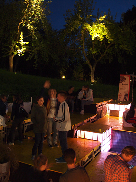 Das Projekt "Raum auf Zeit - Zeit für Raum" wurde mit einem festlichen Abschlussabend gefeiert. Zum Buffet gab es Live-Musik und der Campus wurde durch eine Lichtinstallation in Szene gesetzt. Den krönenden Abschluss des Abends bildete ein großes Feuerwerk mit Musikuntermalung.