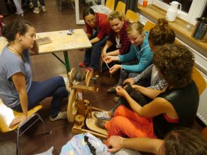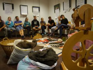 Neben wissenschaftlichen Beiträgen und Exkursionen gab es auch ganz praktische Arbeitseinheiten. Für letztere waren insbesondere die BildungspartnerInnen eine Bereicherung fürs Projektteam, da sie selbst Schafe züchten, Wolle handwerklich verarbeiten und vermarkten oder in verschiedenen regionalen Initiativen und Projekten engagiert sind – und damit also richtige Experten für die Praxis sind!