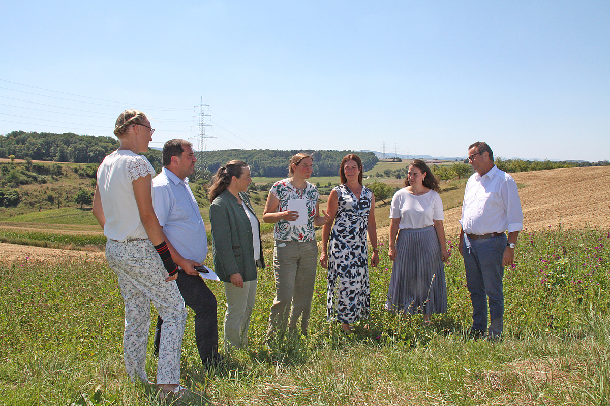 Landwirtschaftsminister Peter Hauk und die Landtagsabgeordnete Dr. Natalie Pfau-Weller (rechts) im Gespräch mit Prof. Dr. Maren Bernau, Prof. Dr. Stephan Schneider, Prorektorin Prof. Dr. Carola Pekrun, Prof. Dr. Maria Müller-Lindenlauf und Prof. Dr. Ulrike Berger-Kögler (v.l.).
