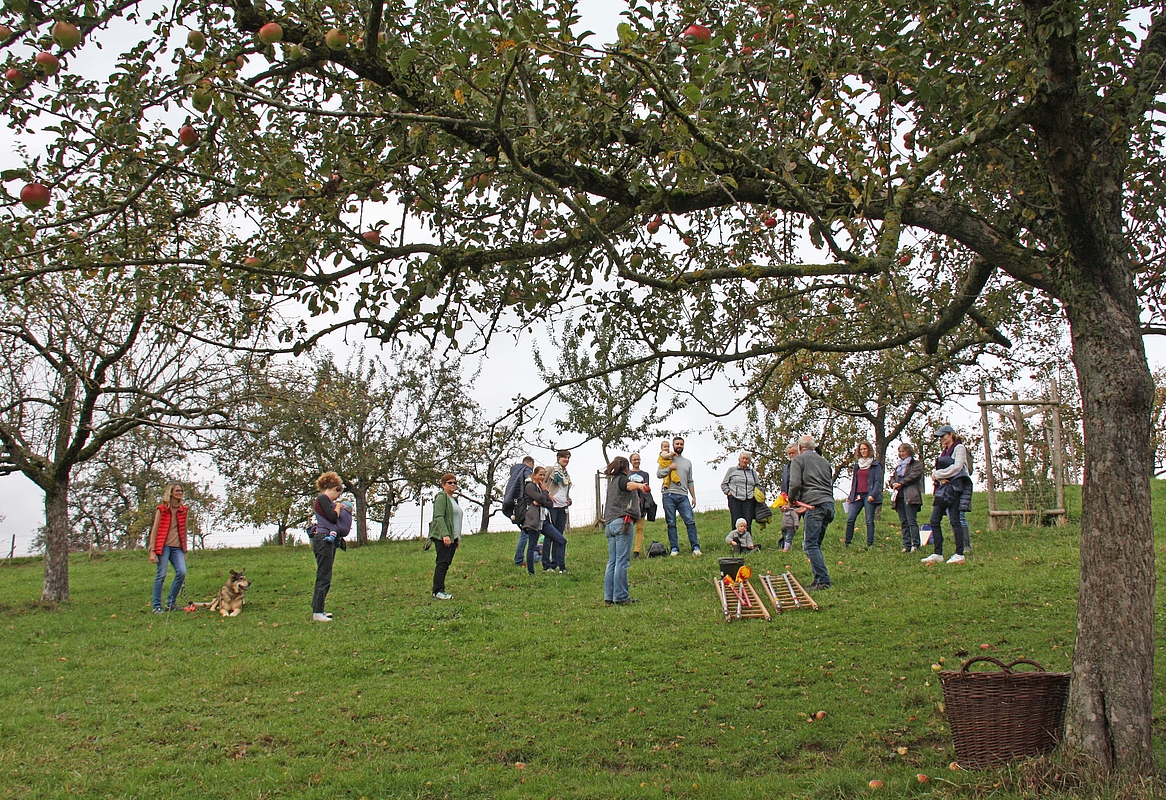 Der Willkommensgeste unter Apfelbäumen in der imposanten Streuobstwiesen-Landschaft bei Tachenhausen gehört in jedem Jahr zum festen Programm der HfWU. Mit dem gemeinsamen Paten-Apfelbaumfest will die Hochschule auch die Bedeutung des Themas Chancengleichheit und Familie unterstreichen, so Prorektorin Prof. Dr. Carola Pekrun und die Gleichstellungsbeauftragte Prof. Dr. Anka Reich in ihren Begrüßungsworten.