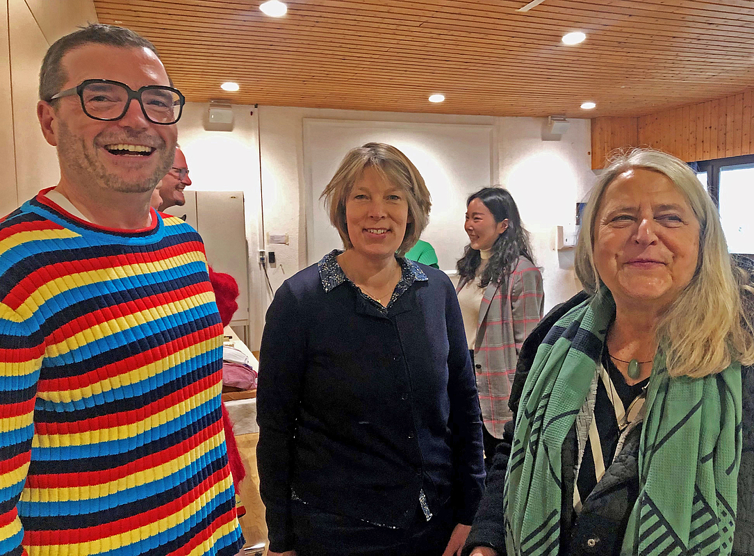 Die Organisatoren des kunstpädagogischen Forschungskolloquiums Prof. Dr. Tobias Loemke, Dr. Kerstin Hallmann und Prof. Dr. Birgit Engel (v.l.). (Foto: HfWU)