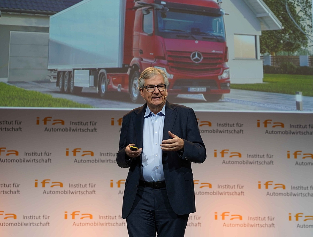 Beim Thema E-Mobilität stehen die LKW meist nicht im Fokus. Zu Unrecht, wie Martin Daum feststellte. Der Vorstandsvorsitzende der Daimler Truck AG verwies auf die Rolle des Warenhandels für den Wohlstand einer Gesellschaft und damit auf die Bedeutung der Transportmittel. Seine einleitenden historischen Überlegungen führten auch ihn zum Problem Infrastruktur in der Gegenwart. Ein leistungsfähiges Netz an Ladestationen für E-LKWs und ein ausreichend leistungsfähiges Stromnetz in absehbare Zeit sieht auch er nicht. Ein Weg zu akzeptablen Energiekosten könnten für den Manager eine CO2-Emissionen-basierte Maut sein. Und auch er befürwortet eine Technologie-Offenheit. Allein der unterschiedliche Einsatz von LKW, auf der Kurz- oder Langstrecke, spreche dafür.