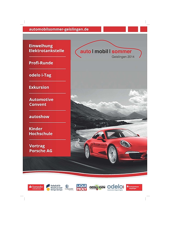 Der „Automobilsommer Geislingen 2014“ bietet für Interessierte wie für Branchenkenner eine Reihe von Vortragsveranstaltungen und Diskussionsrunden, sowie Shows und Events rund um die Automobilität. Offizieller Startschuss ist am kommenden Montagabend um 18:30 Uhr mit der Inbetriebnahme der Elektrotankstelle und der Ausstellung von Elektrofahrzeugen. Anschließend findet die „Profi-Runde“ zum Thema „Nachhaltige Automobilität“ mit dem Umweltbeauftragten der Porsche AG, Herbert Ampferer, den Landtagsabgeordneten Sascha Binder (SPD), Thomas Marwein (Grüne) und Nicole Razavi (CDU) statt, ebenfalls dabei in der Runde sind Franz Loogen von der E-Mobil BW GmbH und Bernd Forstreuter von der Heldele GmbH.