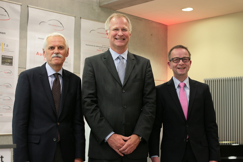 Die Macher der Automobilsommers mit ihrem Gast: Professor Dr. Willi Diez, Jens Puttfarcken und Professor Dr. Stefan Reindl (N. Hess).