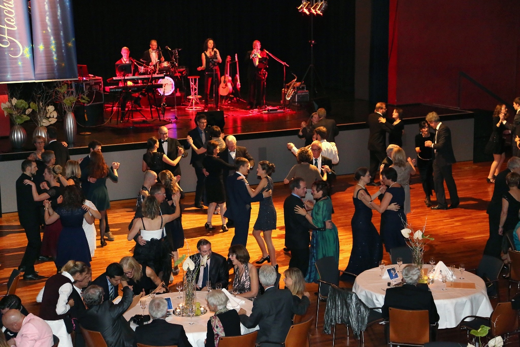 NÜRTINGEN. (hfwu) Der Hochschulball der Hochschule für Wirtschaft und Umwelt erfreut sich auch im sechsten Jahrzehnt großer Beliebtheit: Schon eine Woche vor dem Termin am letzten Freitag, meldete die Geschäftsstelle des Hochschulbundes „volles Haus“, nur noch wenige Nachtkarten gab es an der Abendklasse. Und so begrüßte Hochschulrektor Prof. Dr. Andreas Frey Ehemalige und aktive Studierende, Professoren und Gäste aus der Nah und Fern in der stimmungsvoll dekorierten und ausverkauften Nürtinger Stadthalle K3N.