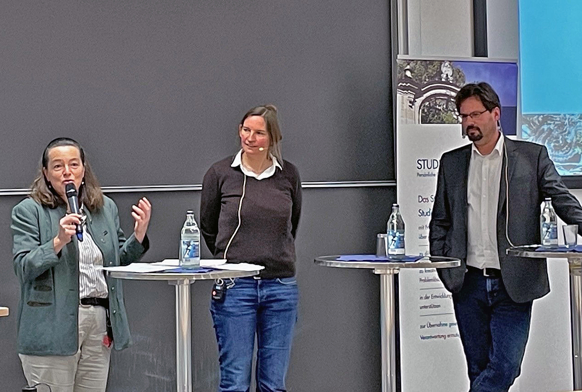 „Artenvielfalt in der Landwirtschaft ist ein ökonomisches Problem, wie man Biodiversität macht, das wissen wir“, bringt Dr. Maria Müller-Lindenlauf das Grundproblem auf den Punkt. „Der Biodiversitätsverlust in der Agrarlandschaft ist das Ergebnis einer Landwirtschaft, die unter der Nutzung des technischen Fortschritts auf hohe Erträge zu niedrigen Erzeugerkosten optimiert wurde“, so die HfWU-Professorin für Agrarökologie. Wie Artenvielfalt in der Landwirtschaft gehen kann, stellte sie anhand einiger eigener Forschungsprojekte vor, darunter die Diversifizierung beim Silomaisanbau mit einem Mais-Stangenbohnen-Gemenge. Nach der Überzeugung der Agrarexpertin gibt es „pflanzenbaulich super Systeme“. Die müssten aber in der Praxis wirtschaftlich umsetzbar sein. Für eine Landwirtschaft, die Artenvielfalt fördert, seien daher höhere Erzeugerpreise oder Prämienzahlungen und ein verändertes Konsumverhalten nötig. Dem entsprechend fordert Müller-Lindenlauf einen Paradigmenwechsel: Nicht mehr das Ertragsmaximum, sondern das ökologische Optimum müsse die Richtschnur in Lehre, Beratung und Forschung werden.