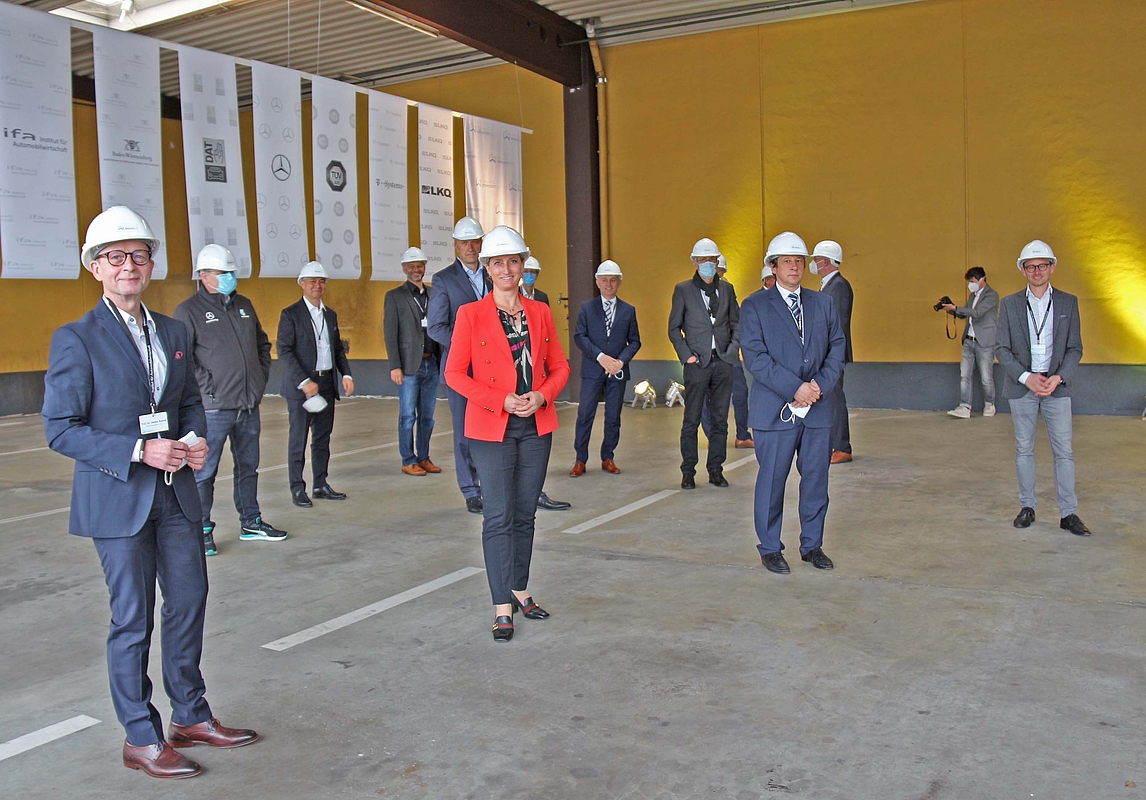 Der Spatenstich durch Wirtschaftsministerin Dr. Nicole Hoffmeister-Kraut mit Vertretern der Gesellschafter Hochschule für Wirtschaft und Umwelt Nürtingen-Geislingen (HfWU)HfWU, Deutsche Automobil Treuhand (DAT) und Institut für Automobilwirtschaft (IfA) sowie mit strategischen Partnern bildet den Startschuss der baulichen Maßnahmen zur Zukunftswerkstatt 4.0. In den nächsten vier Monaten wird das Gebäude auf dem Gelände der BusWorld in Esslingen im Außen- und Innenbereich umfangreich umgebaut und modernisiert, um den künftigen Anforderungen der Branche gerecht zu werden. Auf über 450 Quadratmetern entsteht ein Innovationsschaufenster, Versuchslabor und Schulungszentrum für das Kfz-Gewerbe mit zwei voll ausgestatteten Werkstattarbeitsplätzen, einem Showroom-Bereich sowie Seminarräumen. Rund 75 Unternehmen und Institutionen zählen bereits zum Partnernetzwerk der Zukunftswerkstatt 4.0, weitere 60 potenzielle Partner zeigen Interesse.