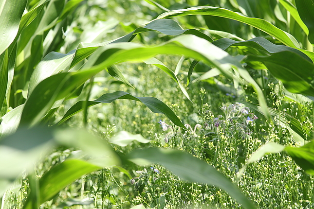 In der dritten Projektphase steht der Fokus an der HfWU nun auf der Entwicklung von praxistauglichen Blühmischungen, die als Untersaat in den Mais eingebracht werden, sowie den Vor- und Nachteilen eines solchen integrierten Ansatzes gegenüber Blühstreifen. Blühpflanzen, die sich für die Untersaat eignen, sollten einerseits wenig Konkurrenz darstellen, gleichzeitig aber auch im Schatten blühen und bestäubende Insekten anlocken. Besonders im Blick stehen zudem die Effekte auf den Ertrag, den Erosionsschutz sowie die potentielle Verunkrautung der Folgekultur.