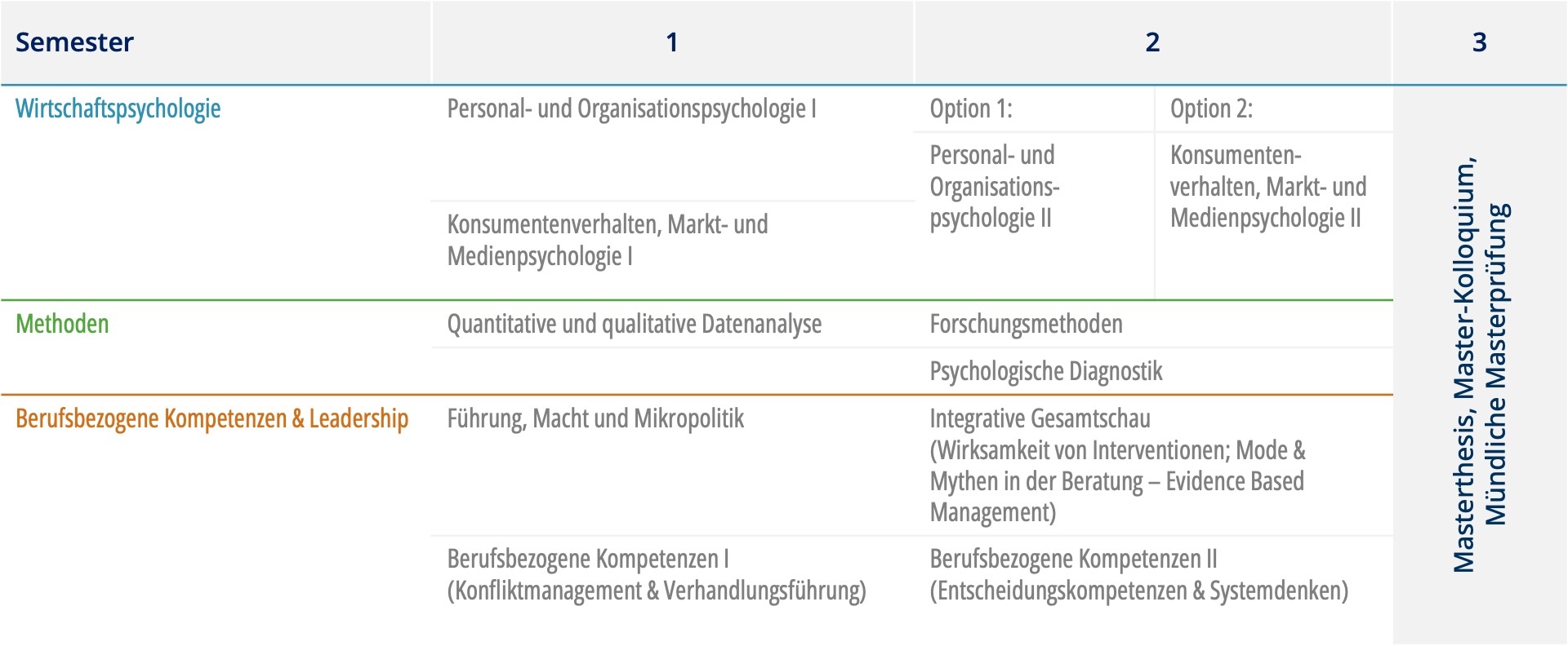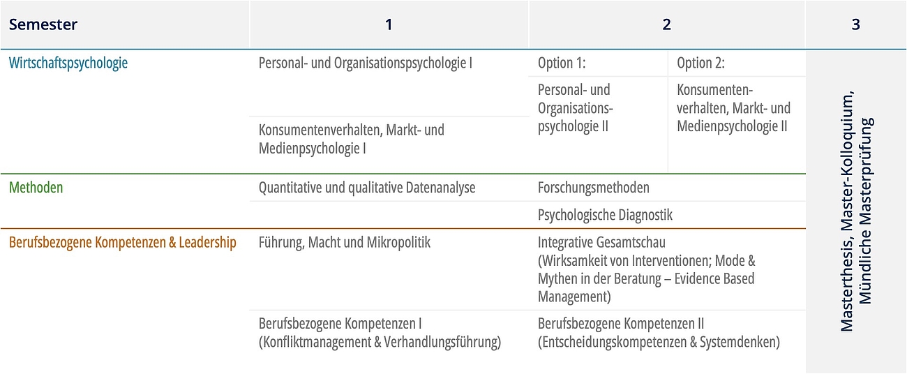 Mindestens 25 ECTS-Leistungspunkte in Wirtschaftspsychologie (Arbeits- / Personal- / Organisations- / Finanz- / Markt-, Werbe- und Konsumpsychologie),