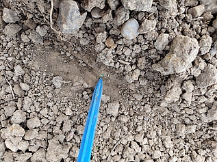 Im Bild 4 sind die markierten Ablagepositionen der Rübenpillen zu sehen. Trotz der schwierigen Bodenverhältnisse konnte die Monopill durch eine exakte Ablage überzeugen. In weiteren Versuchen soll die Ablagegenauigkeit auf dem Acker näher betrachtet und wissenschaftlich erfasst werden.