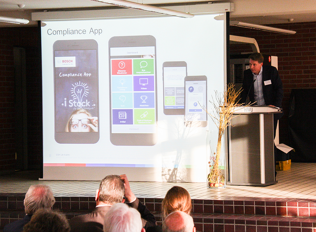 Dr. Wolfgang Kübler, Chief Compliance Officer der Robert Bosch GmbH, stellte unter anderem die Compliance App vor.