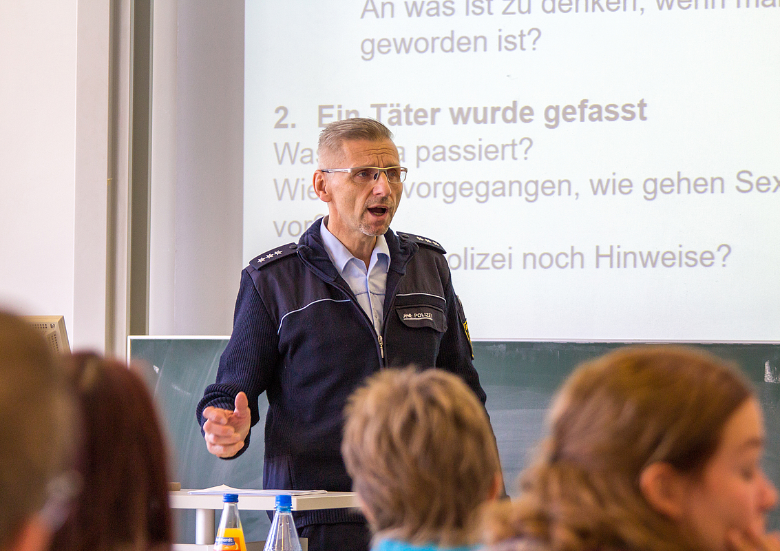 Bei einer Veranstaltung zum Thema „Sexualisierte Gewalt – Selbstbestimmung ist nicht verhandelbar“ informierte Martina Rudolf vom Gebäudemanagement der Hochschule über die bisher ergriffenen Maßnahmen.