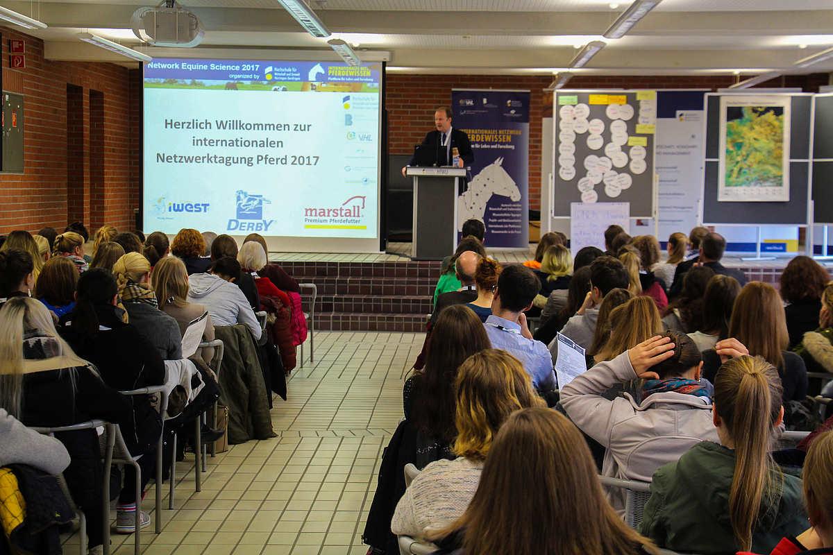 Prof. Dr. Dirk Winter, Dekan des HfWU-Studienganges Pferdewirtschaft, begrüßt die Teilnehmer der Netzwerktagung.