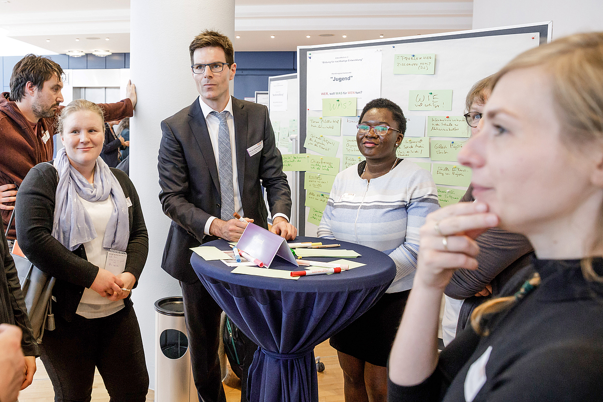 Victoria Agbai, Studierende im MBA-Studiengang International Management moderierte zusammen mit Prof. Dr. Christian Arndt, dem Leiter des Zentrums für Nachhaltige Entwicklung, im Rahmen des Zukunftsforums 3, das im Stil eines Worldcafés durchgeführt wurde (siehe Foto). Hierbei kam es zu drei zentralen Ergebnissen: Es wurde deutlich, dass Jugendliche auch über die Schule hinaus regelmäßig Bedarf an der Vermittlung von Werten und Werteorientierung sehen. Zweitens ist es wichtig, den aktiven Jugendlichen konkrete Fähigkeiten im Bereich des Projektmanagements zu vermitteln. Drittens wurde betont, dass die Information von Jugendlichen wichtig ist, die sich nicht bereits für Nachhaltige Entwicklung engagieren. Hier empfahlen die Jugendliche, diese über soziale Medien oder Initiativen, wie etwa im Rahmen eines Fußballturniers, zu informieren. Insgesamt, so Prof. Arndt, „ist die HfWU hiermit gut aufgestellt aber gleichzeitig herausgefordert, den Studierenden diese Bedarfe auch im Rahmen ihres Studiums bei uns zu vermitteln.“