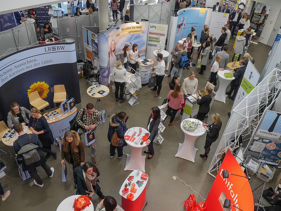 Bei der 28. Auflage der Veranstaltung, die von HfWU-Rektor Prof. Dr. Andreas Frey eröffnet wurde, präsentierten sich unter anderem namhafte Firmen wie Bosch, Aldi Süd, Metabo, Ernst & Young, die LBBW und die Kreissparkasse Esslingen-Nürtingen. Zudem konnten sich die Besucher über die HfWU-Masterstudiengänge Organisationsdesign, Immobilienmanagement und International Management und Prozessmanagement informieren.