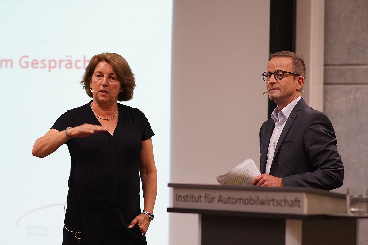 In der Diskussion interessierte die Studierenden auch, wie sich die Digitalisierung auf den Handel auswirken wird. Nach Angaben der Porsche-Frau kann die Marke nicht komplett auf Verkauf über das Internet setzen. „Es gibt viele Kanäle. Aber eine Premiummarke wie unsere muss auch auf sehr guten Service setzen. Und das kann ein Computer nicht alleine. Hier müssen immer Menschen mit dabei sein.“ Bei Job-Anwärterinnen und Anwärtern schätze sie dennoch die Chancen besonders hoch ein für jene Absolventinnen und Absolventen, die sich auf Digitalisierung spezialisiert haben.
