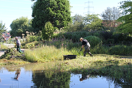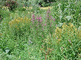 "Nymphenreigen" und "Nymphentanz" sind Mischpflanzungen, die speziell für vernässte Standorte entwickelt werden. Hier sind viele Arten der Lebensbereiche Freifläche feucht und Wasserrand zu finden. Ihr Standort wird durch die Nähe des Teichs befeuchtet.