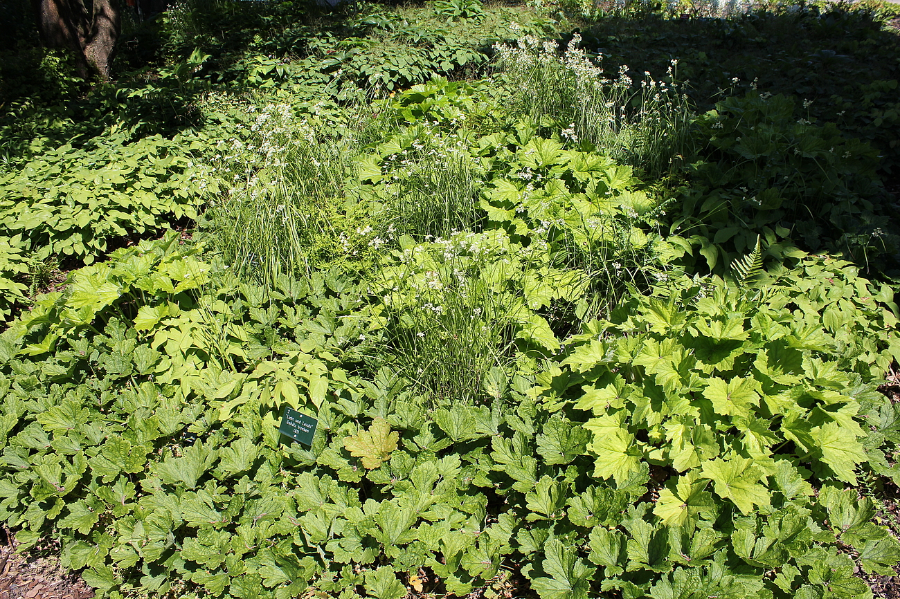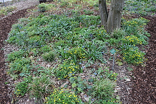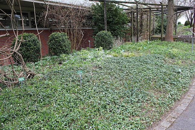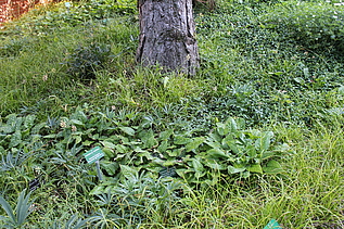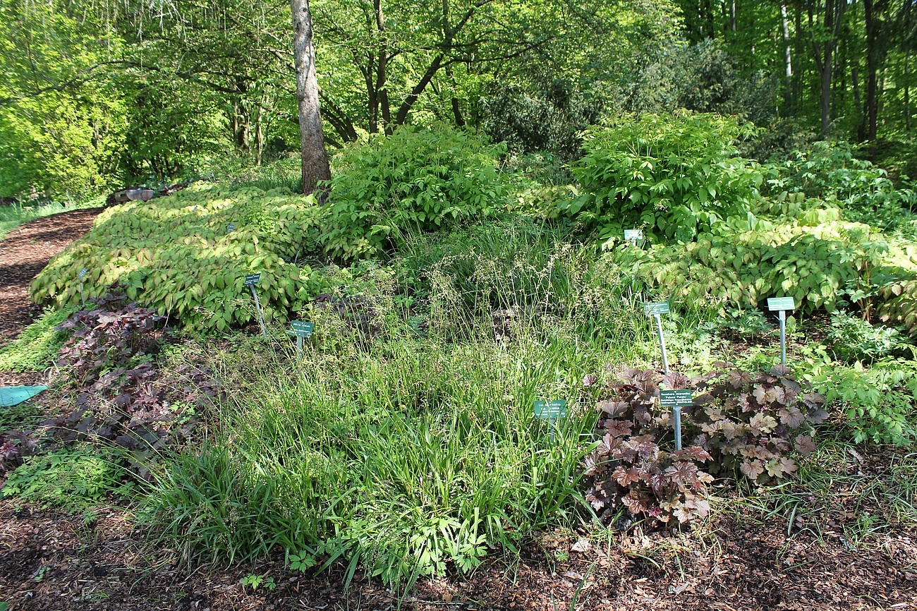 Direkt im Anschluss an den Hauptweg finden sich 4 sogenannte "Module für den trockenen Schatten". Es sind Mischpflanzungen auf jeweils einer quadratischer Grundfläche von 10 qm. Sie können bei Bedarf beliebig aneinandergereiht und dadurch für unterschiedlich große Flächen verwendet werden. Sie kommen mit wenigen Arten aus. Seit dem Jahr 2014 sind noch 4 weitere Module hinzugekommen, von denen 3 am Waldrand neben der Extensiven Schattenpflanzung aufgepflanzt sind.