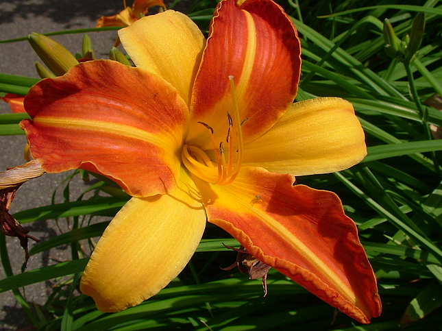 Jede Taglilienblüte öffnet sich wirklich nur einen Tag. Der schraubelige Blütenstand trägt viele Blütenknospen, die sich nacheinander öffnen.  In der Gesamtheit bereichern die zahllosen Sorten und Arten den Sommer von Mai bis in den August hinein.