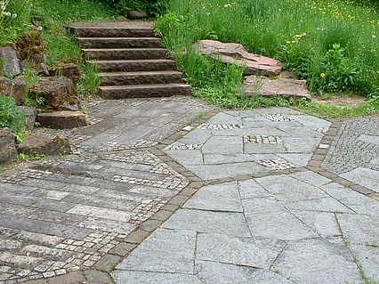 Der Naturwerkstein-Lehrpfad vermittelt Informationen über verschiedene im Garten- und Landschaftsbau verwendete Natursteinarten und deren Bearbeitungsmöglichkeiten. Die Anordnung der dargestellten Gesteine entspricht ihrer Entstehungsgeschichte.